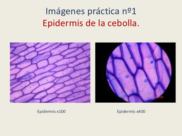 - 14. Imágenes práctica nº1 Epidermis de la cebolla.Epidermis x100 Epidermis x400